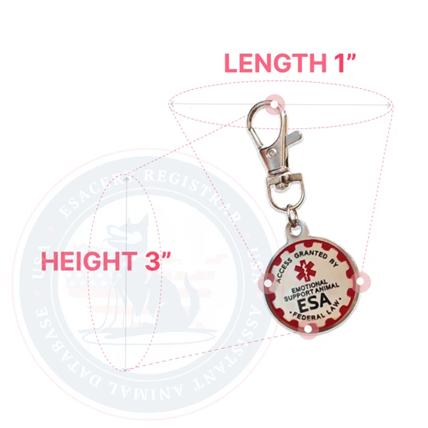 Durable and visible our Emotional Support Animal (ESA) Metal Tag makes sure your ESA is easily recognized, so public interactions go smoothly and your companion is respected.
