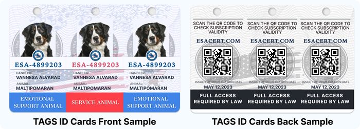 To order an Tag ID Cards, you must have an active assistant animal registration with ESAcert.