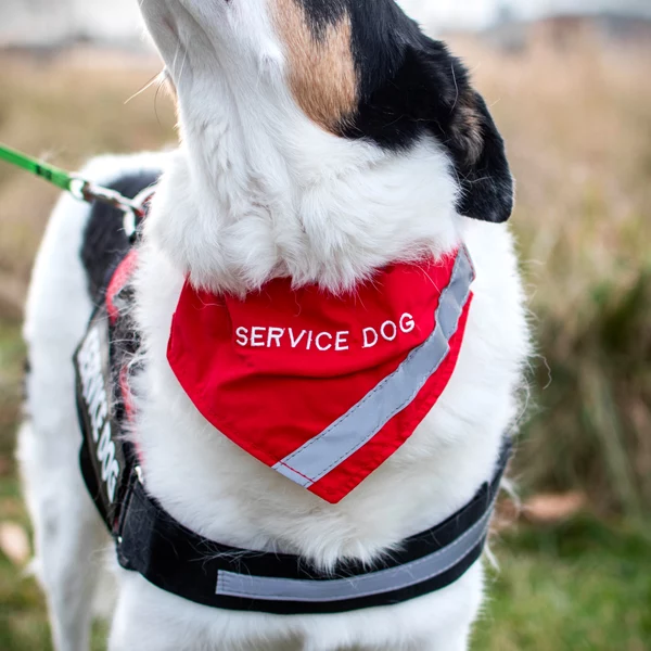 A service dog bandana provides a stylish and comfortable way to help identify your dog as a working animal. It’s a less restrictive alternative to a harness or vest, especially in hot weather, and can easily display important labels like “Service Dog” or “Do Not Pet.”