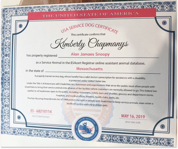 A service dog certificate gives all registration rights without limitation of time, making it permanent proof of your emotional support animal or psychiatric service dog.