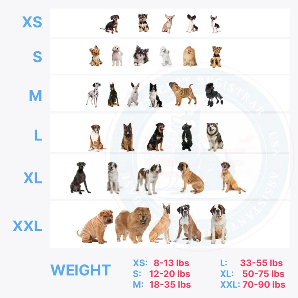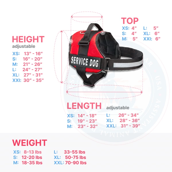 For a brief overview of how to measure your dog, refer to our graphic depicting the leash size by breed for grown dogs. Remember, these are averages, and weight and higher parameters are better. Service dog vests for large dogs at our store are well crafted to meet needs and look sleek while in service. Our dog vests are made to support the working dog and its handler and provide them with all the necessary equipment they might need at a given time.