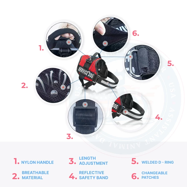 These features are helpful in identification and training. A service animal registration is not needed for a purchase, making a significant difference for every owner. Our products support those unable to utilize regular equipment; the product improves a service dog and its handler.